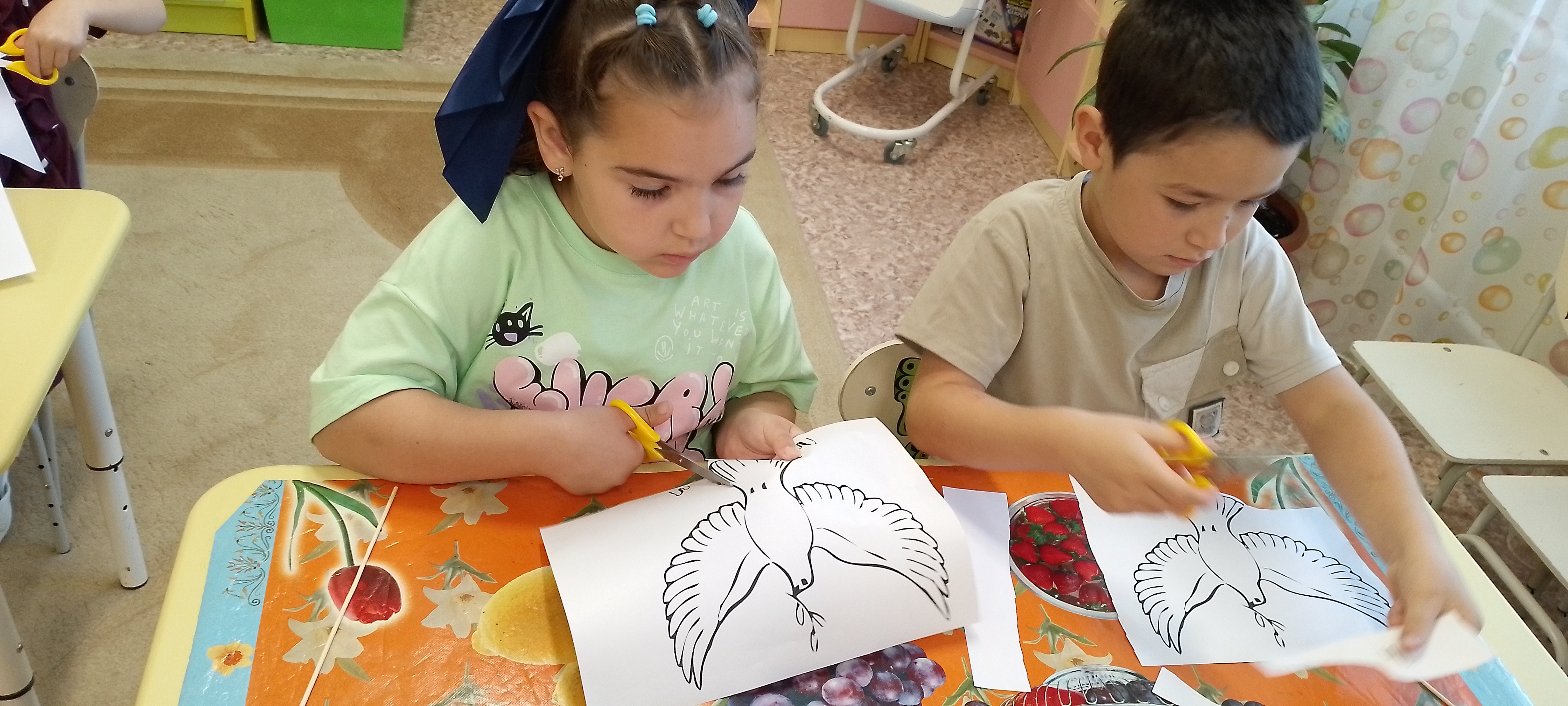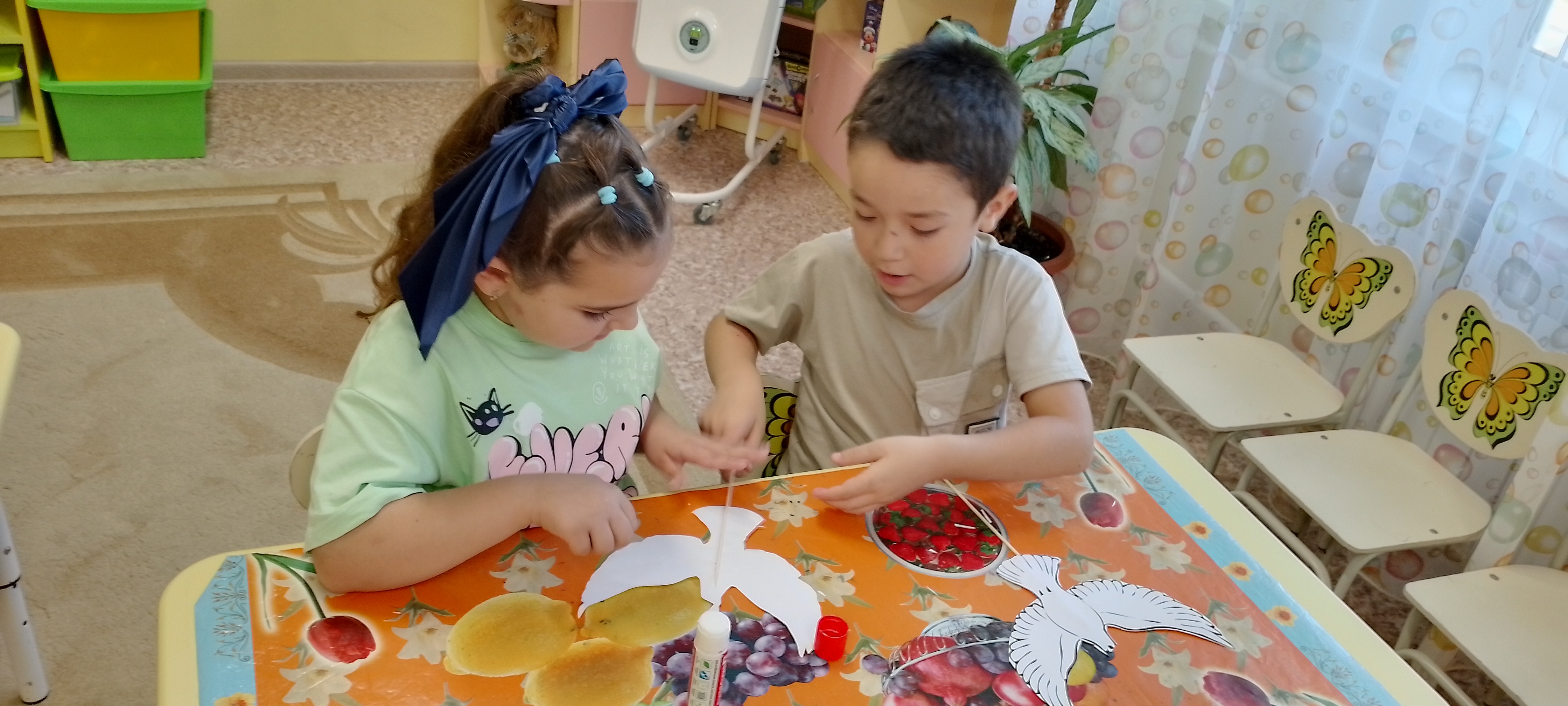 В нашей подготовительной группе «Пчелки» мы провели занятие, посвященное трагическим событиям сентября 2004 года – теракту в Беслане. Дети узнали о произошедшем и почтили память погибших минутой молчания. В знак памяти и как символ мира, света и борьбы с террором, каждый ребенок изготовил бумажного голубя.