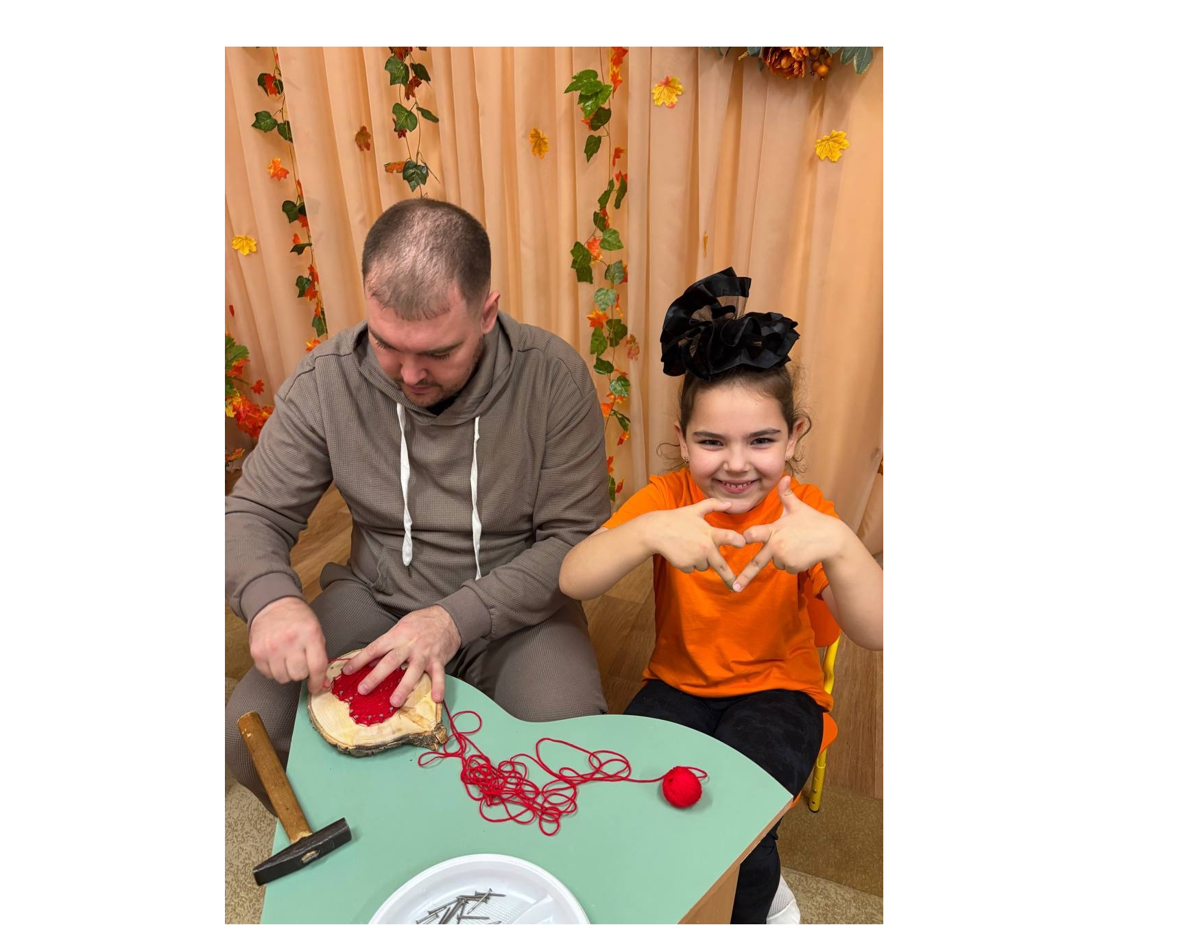 В технике стринг-арт (натяжение нитей на гвоздиках) они сделали символичные поделки — «любящее сердце»