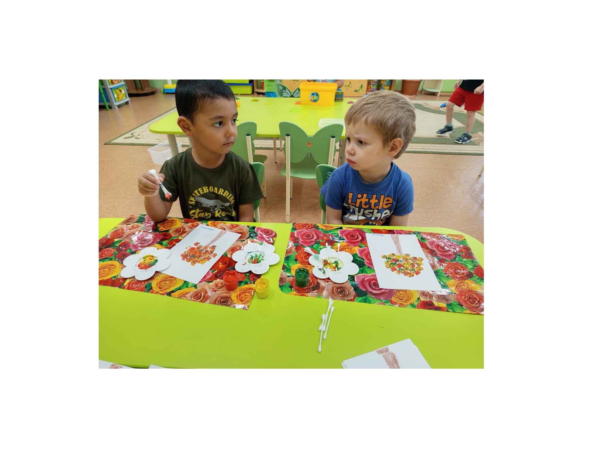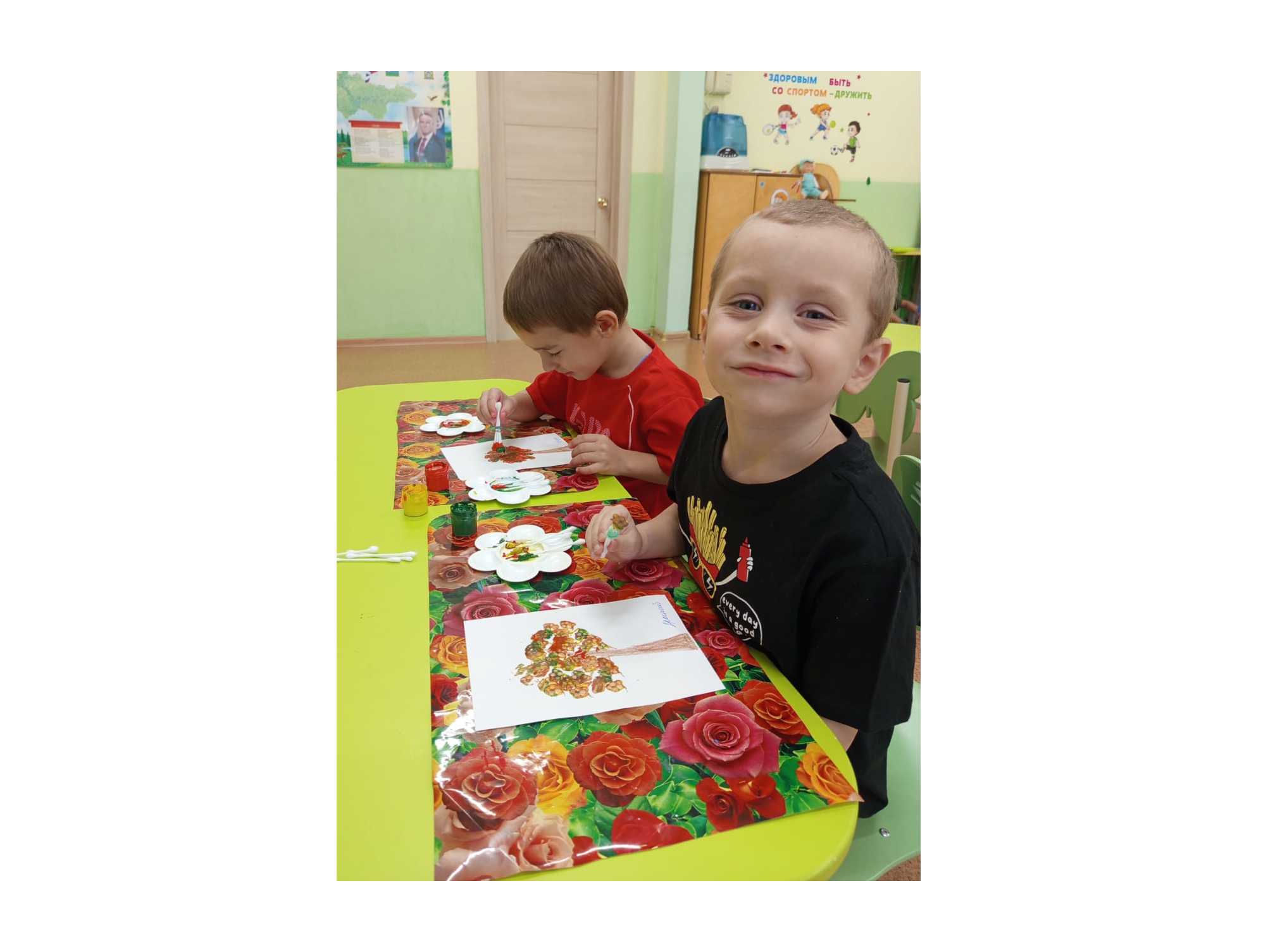 С помощью обычных ватных палочек и красок мы нарисовали красивые деревья с листиками, закрепили алгоритм выполнения работы по рисованию ватными палочками. Ребята проявили свою фантазию и нарисовали замечательные деревья.