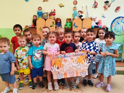 Наши малыши группы "Сказка" с большой любовью и теплотой отзываются о своих бабушках и дедушках. Ребята поиграли в игру "Дружная семья", выучили пальчиковую игру "Моя семья" и выполнили коллективную работу.