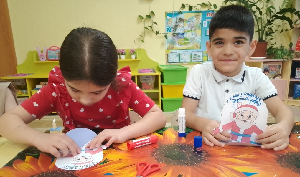 Воспитанники подготовительной группы «Пчелки» тоже с удовольствием присоединились к этому празднику. Вооружившись ножницами, клеем и цветной бумагой, ребята с увлечением принялись за творчество. В итоге каждый из них создал своего собственного, веселого и озорного Деда Мороза.