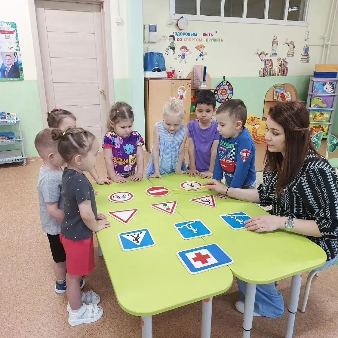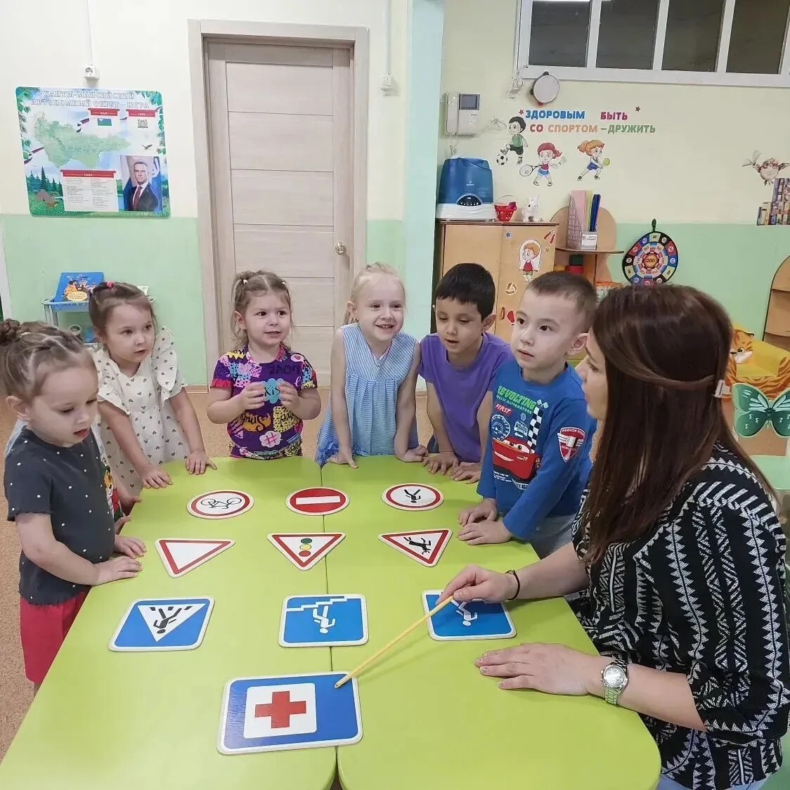 Обсудили, как знаки помогают быть внимательными на дороге. Мы уверены, что такие занятия помогут нашим детям быть более осторожными на улице.