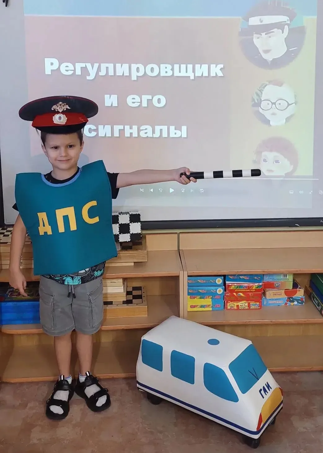 В рамках профилактической акции "Соблюдаем ПДД" воспитанники группы "Звёздочки" познакомились с профессией регулировщика. В ходе ознакомления дети узнали, что означает тот или иной жест регулировщика дорожного движения, когда можно идти, а когда нужно стоять.