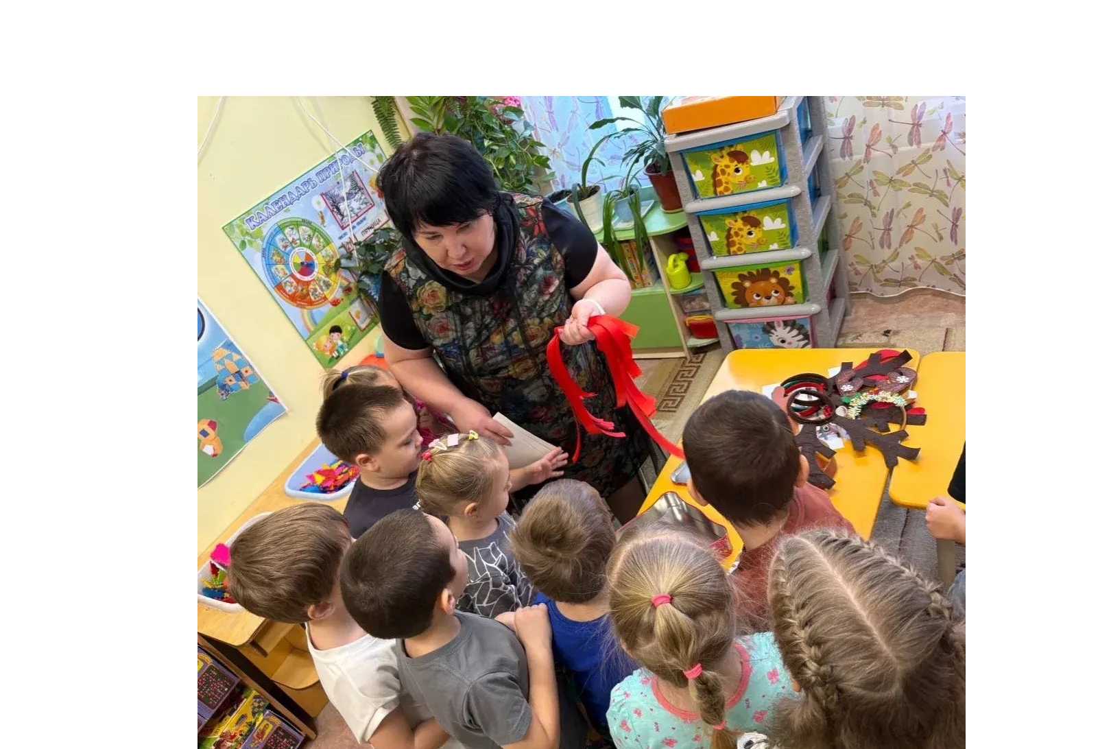 Дети взяли по ленточке и не забыли про гостей, которые пришли к нам на занятие.